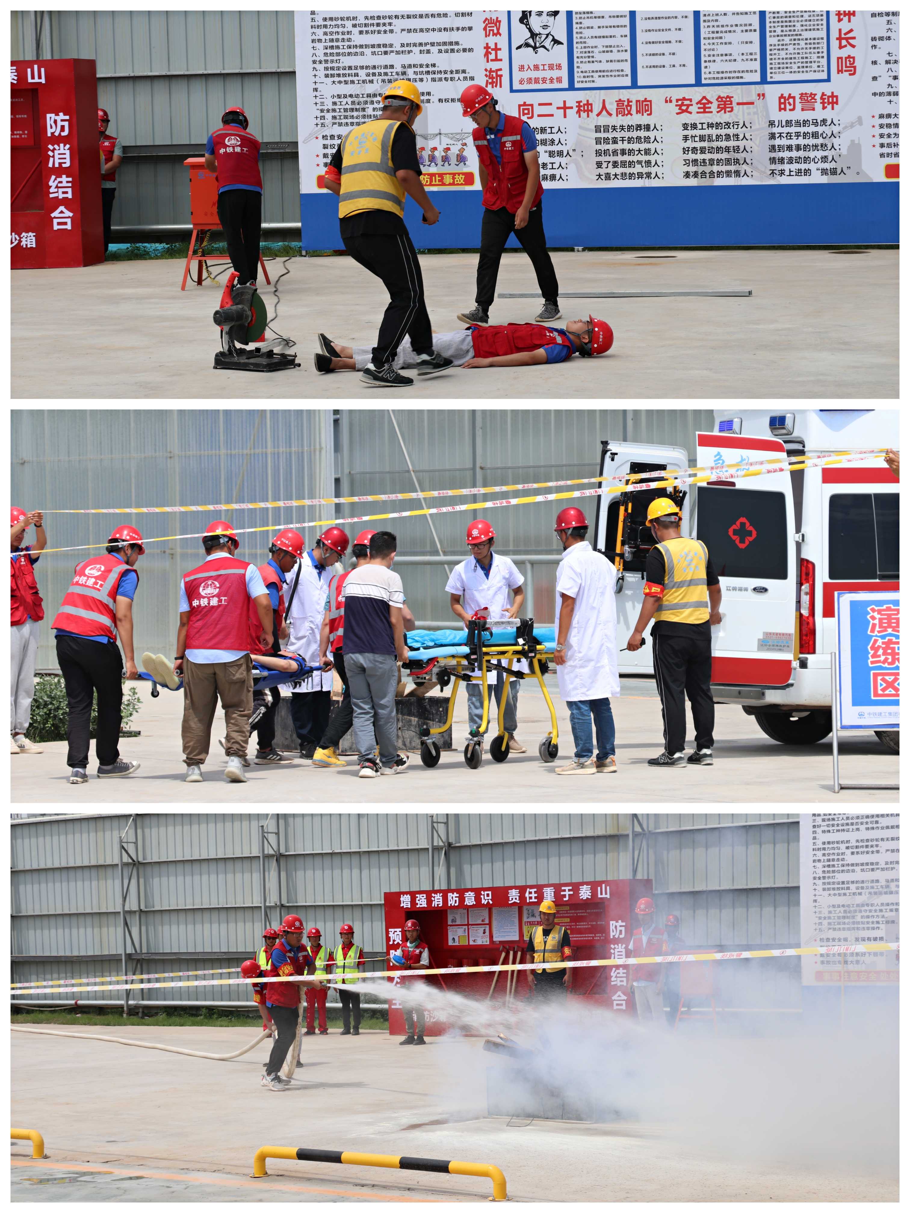 本次演練內(nèi)容分為四項,一是觸電事故應(yīng)急救援演練,二是機械傷害事故應(yīng)急演練,三是高溫中暑應(yīng)急演練,四是消防事故應(yīng)急演練。