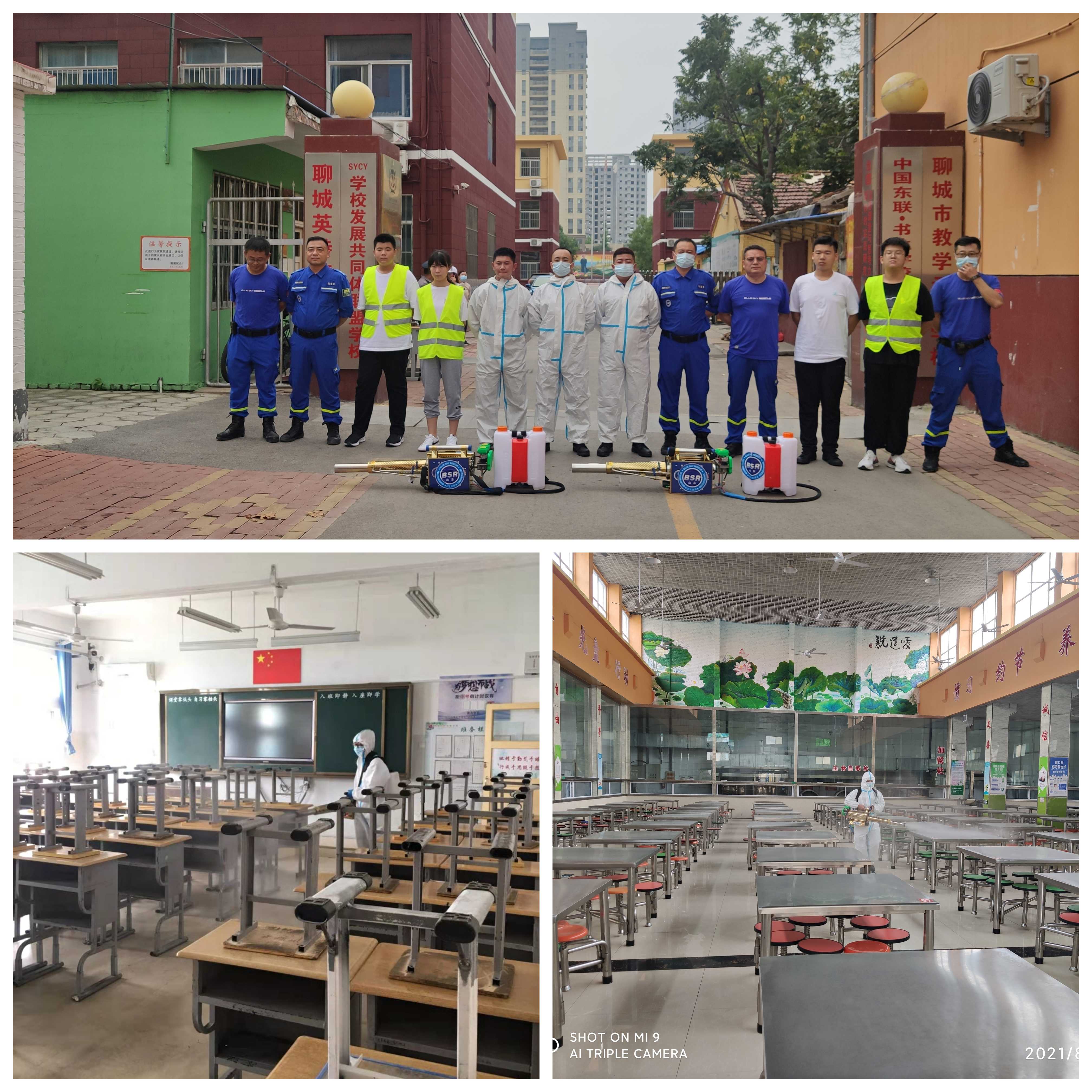 此次消殺,藍天救援隊共出動14名消殺人員,攜帶4臺彌霧機,先后對財金公司辦公樓及東方雙語學校、水城慧德中學、英特小學三個校區(qū)的120余間教室、辦公室、樓梯間、各功能室、運動場等進行無死角、全覆蓋的徹底消殺,消殺總面積超6萬平方米。
